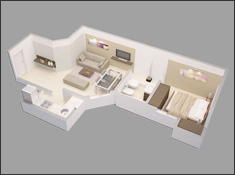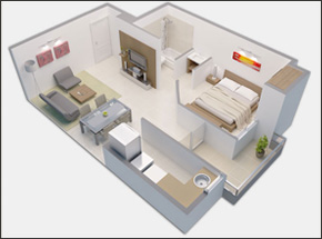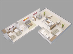 • Departamentos de 1 y 2 dormitorios con amplios balcones.